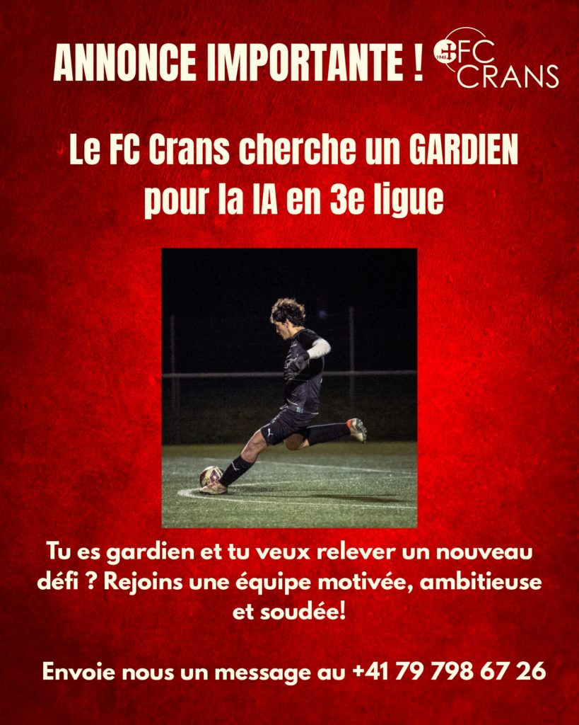 Annonces Club recherche Gardien Footvaud 5 février 2026 FootVaud Partager 0 Min de lecture PARTAGER Leader de 3e ligue et porté par de grandes ambitions, le FC Crans IA est à la recherche d’un gardien de but pour renforcer son effectif lors du deuxième tour. TAGGED:FootVaud Partager l'article Facebook Whatsapp Whatsapp Copy Link Vers l’égalité dans le foot Football Féminin Un Lausanne-Sport docile s’offre Servette Football d'élite Un tournoi de foot en salle à ne pas manquer Annonces Futsal: la passion, de San Remo à Fribourg Flash Actu